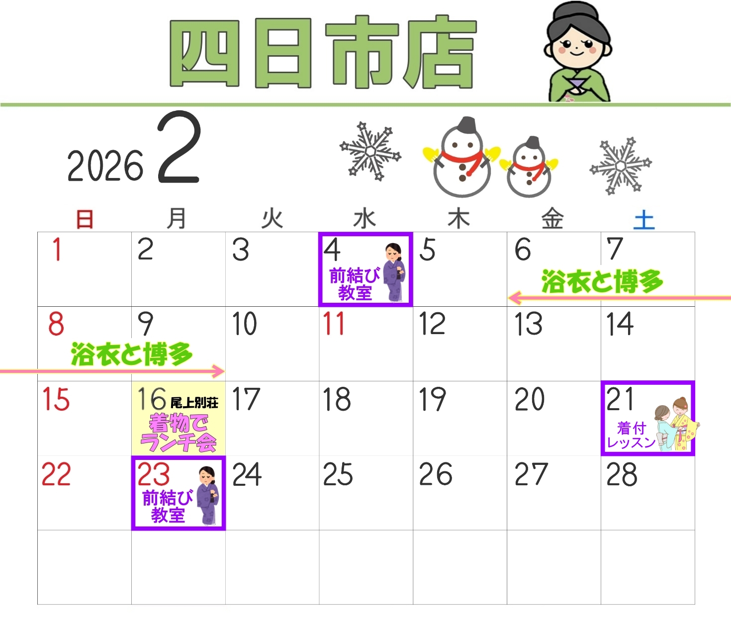 四日市店 2月のイベントカレンダー