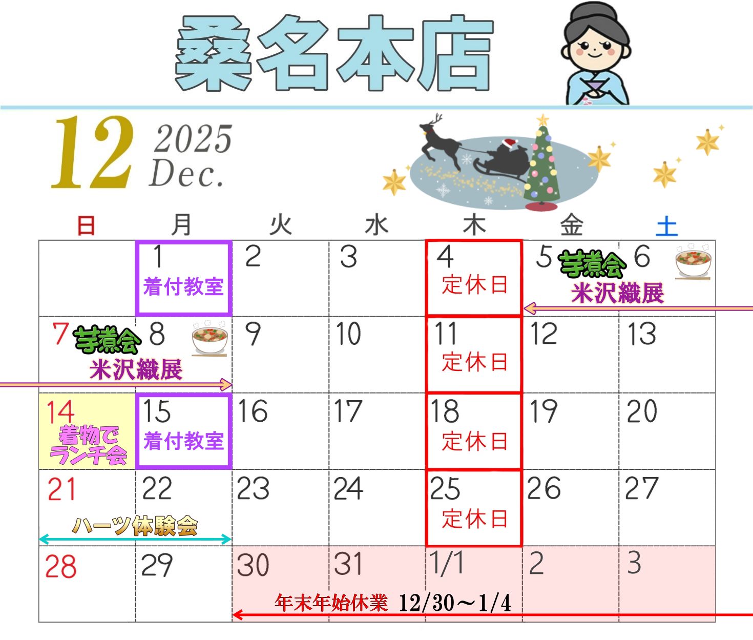 桑名本店 12月のイベントカレンダー