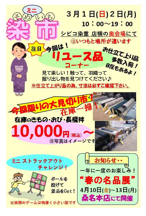 次の日曜・月曜日は「ミニ染市」へGo!🎀