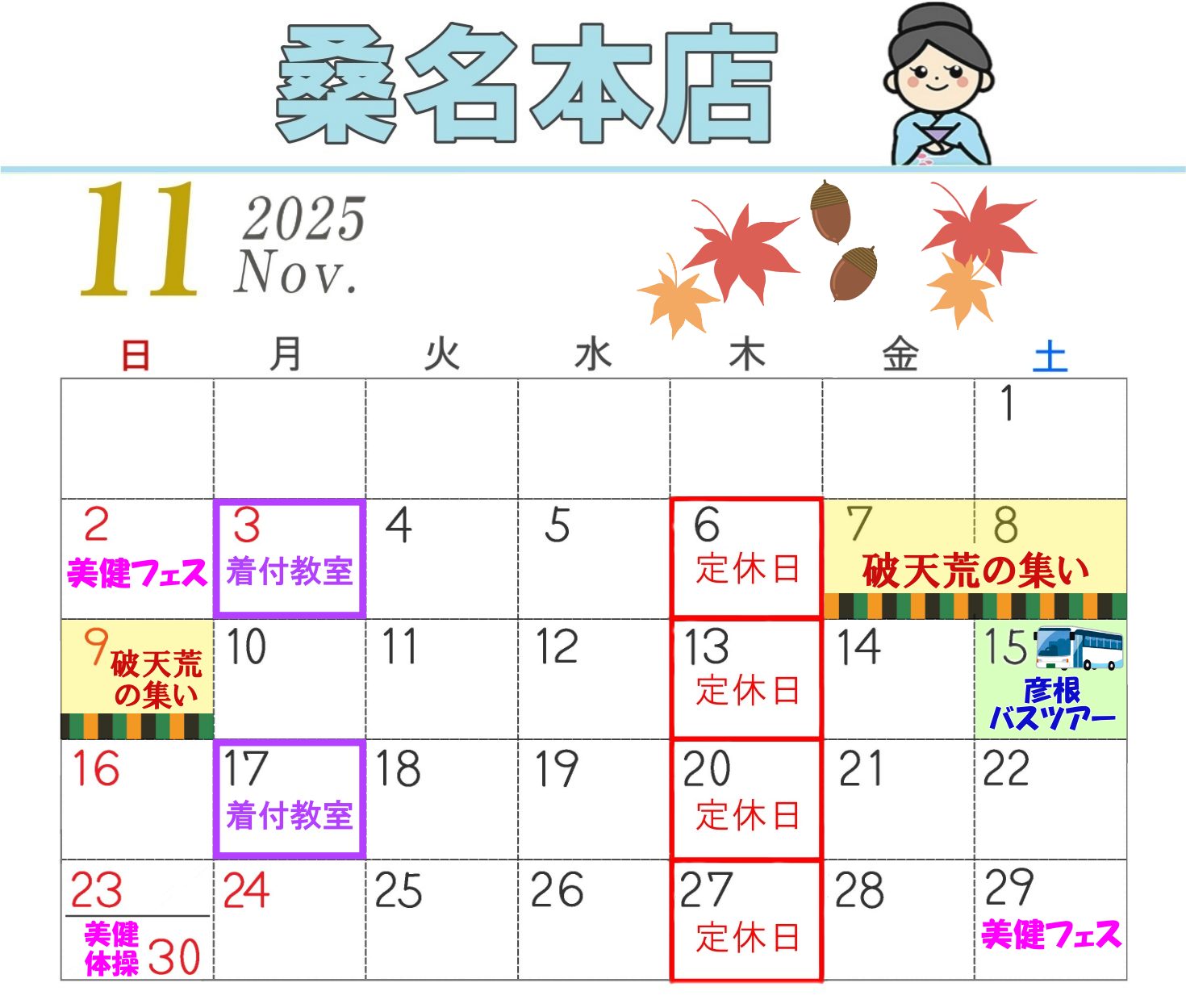 桑名本店 11月のイベントカレンダー
